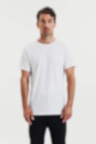 Perfekt für Layering-Looks: Dieses ultraleichte T-Shirt aus 150 GSM Single Jersey bietet ein weiches und atmungsaktives Tragegefühl. Mit regulärer, leicht entspannter Passform und geripptem Ausschnitt – ideal unter einem Hemd oder Pullover.