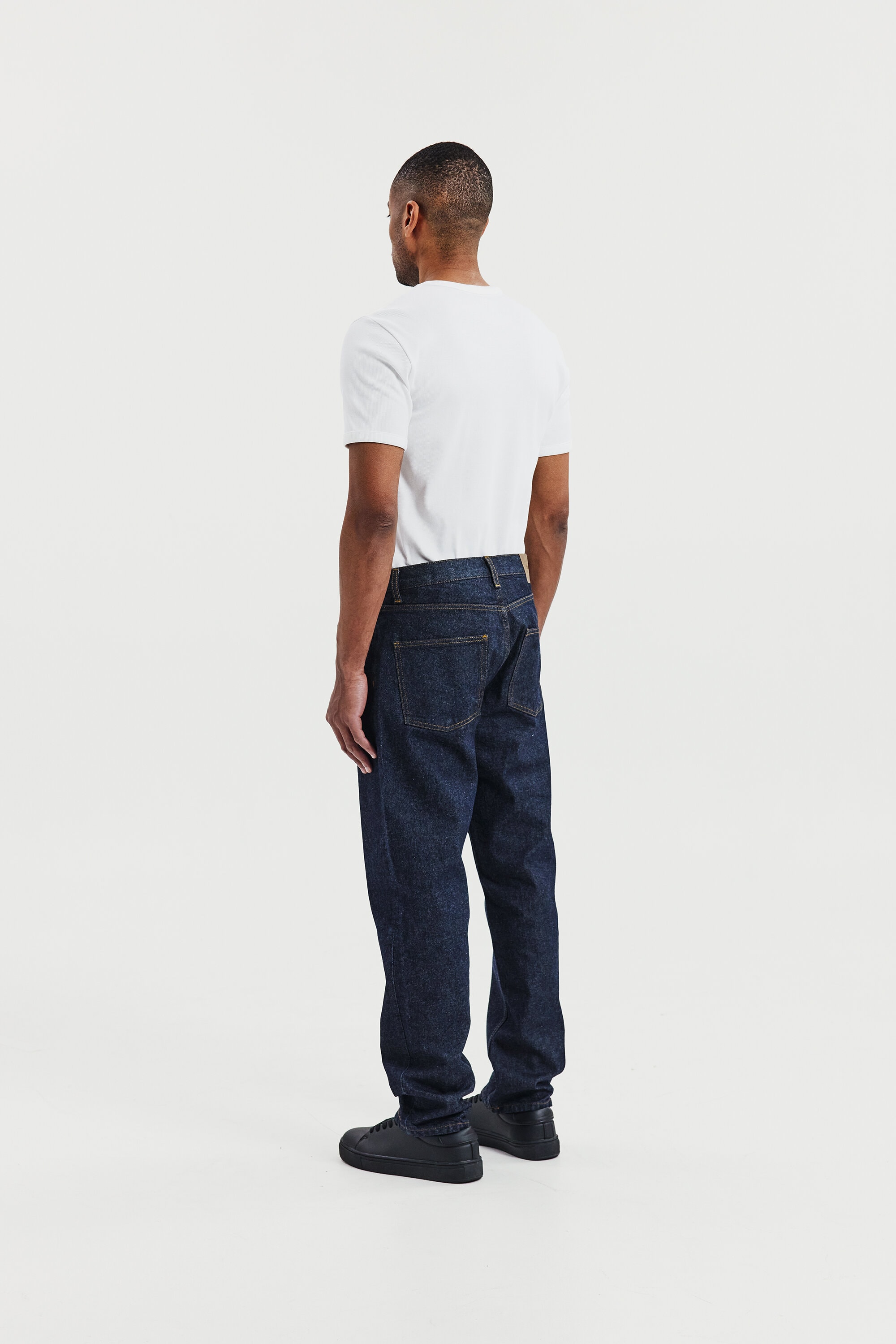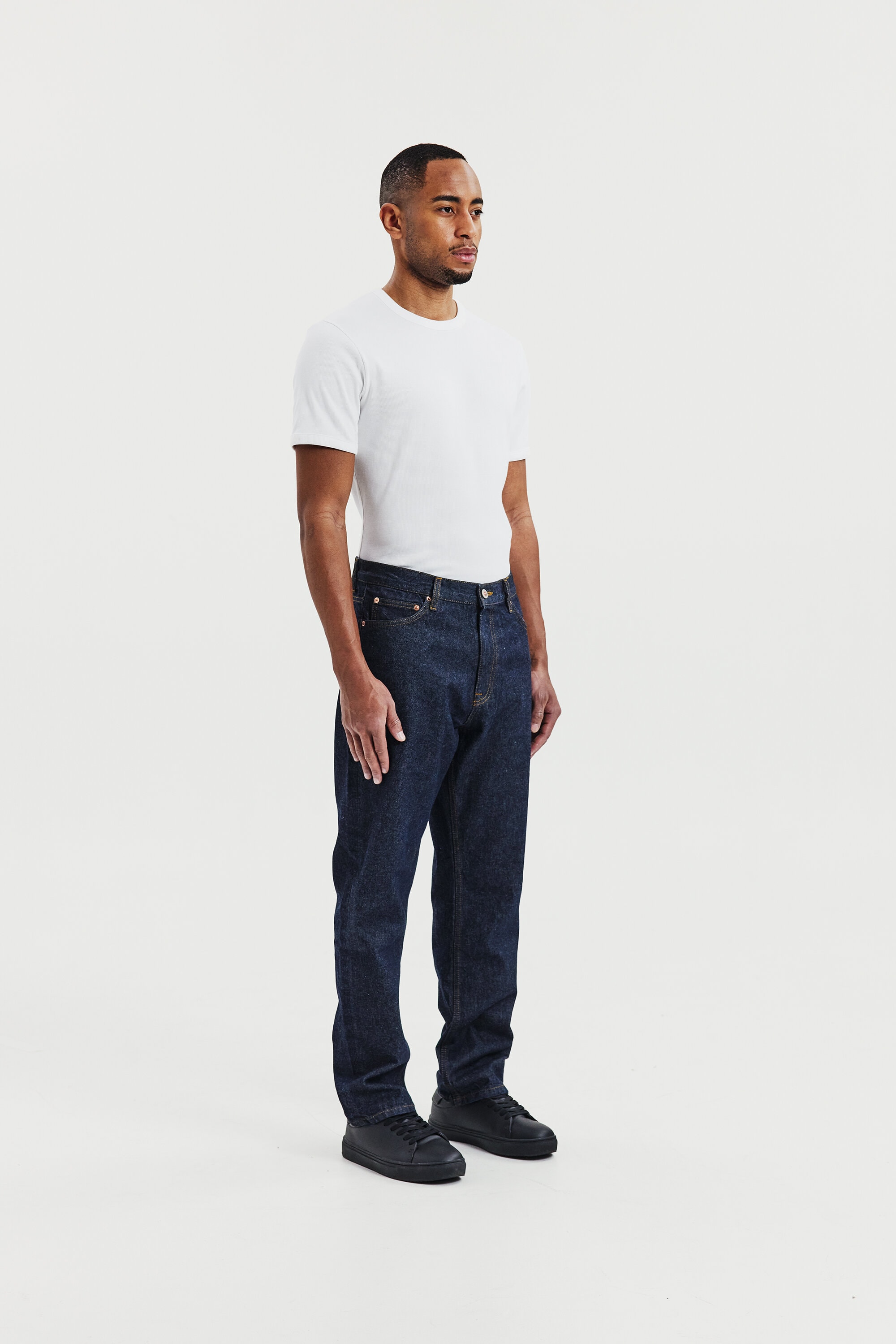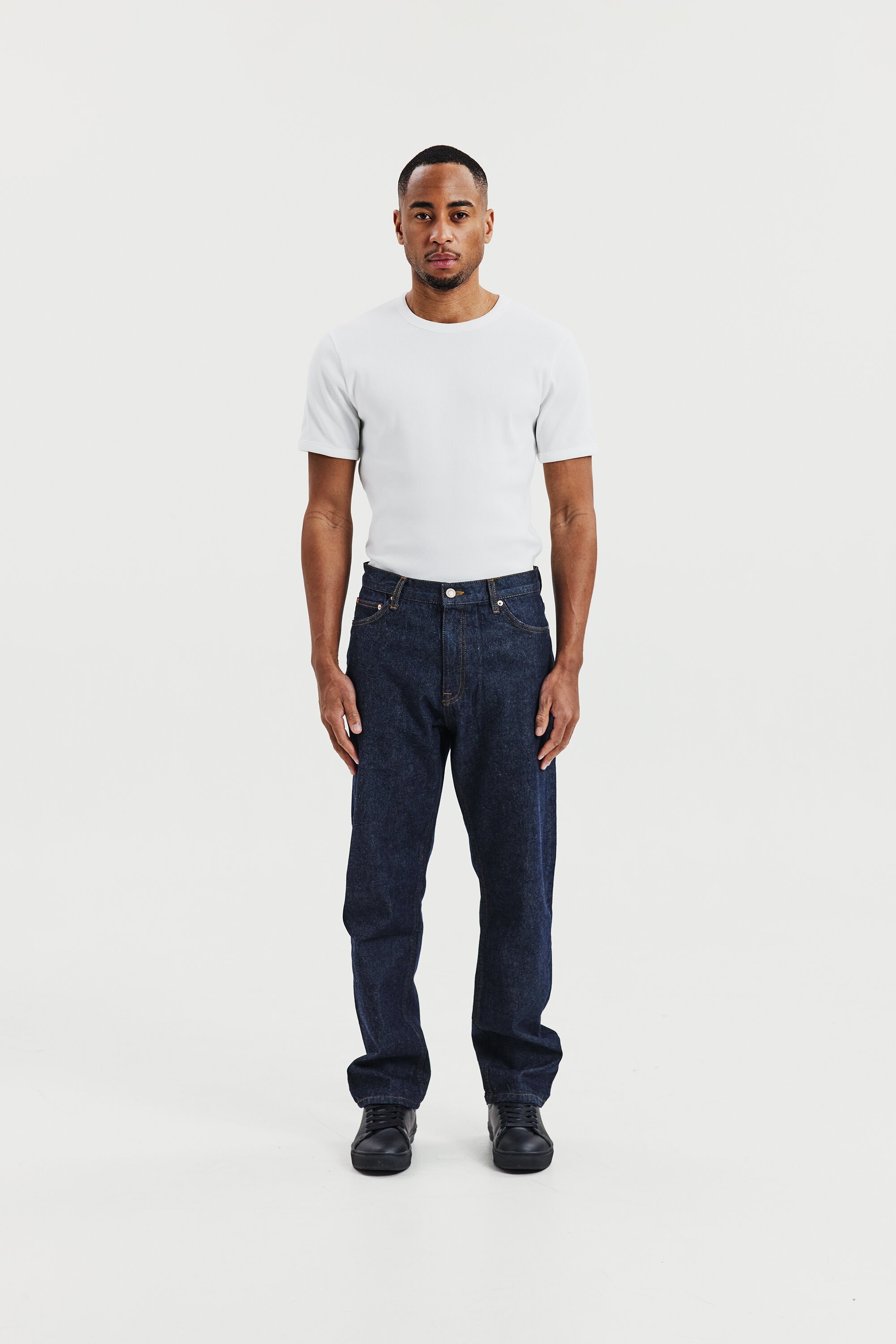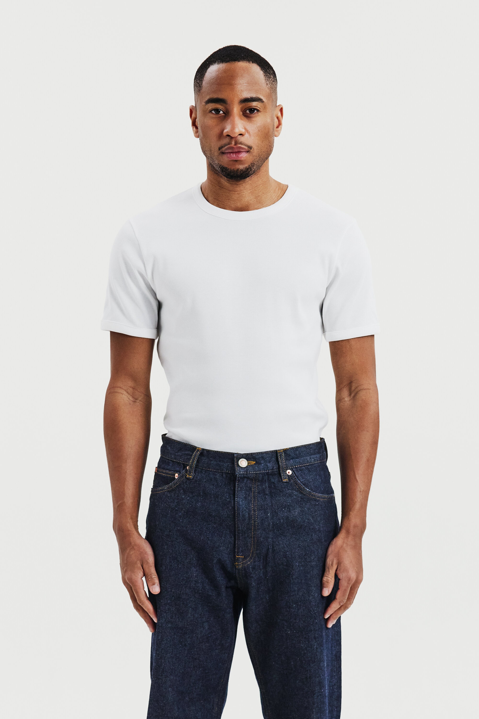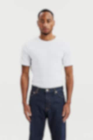 Geripptes T-Shirt mit Rundhalsausschnitt für Herren. Ein modernes Essential für den Alltag. Die weiche gerippte Baumwolle sorgt für eine flexible Passform, die ihre Form langfristig behält.