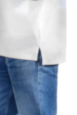 T-Shirt aus robustem 300 gsm Bio-Baumwollstoff gefertigt. Es verfügt über einen stabilen Halsausschnitt mit dekorativen Ziernähten und stilvollen Seitenschlitzen. Mit leicht verlängerten Ärmeln und breiteren Schultern erhält es einen subtilen Oversized-Look. Dieses Stück kommt besonders zur Geltung, wenn es solo getragen wird, und vermittelt eine mühelos coole Ästhetik.