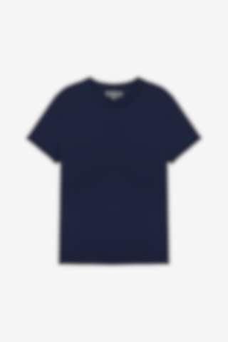 Unser klassisches Crew-Neck-T-Shirt mit regulärer Passform, jetzt mit hochgekrempelten Ärmeln. Das Modell hat hochgekrempelte Ärmel, die mit einer dezenten Naht fixiert sind, um sicherzustellen, dass sie nicht herunterrollen.