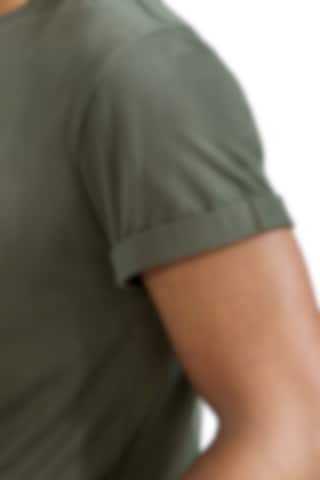 Unser klassisches Crew-Neck-T-Shirt mit regulärer Passform, jetzt mit hochgekrempelten Ärmeln. Das Modell hat hochgekrempelte Ärmel, die mit einer dezenten Naht fixiert sind, um sicherzustellen, dass sie nicht herunterrollen.