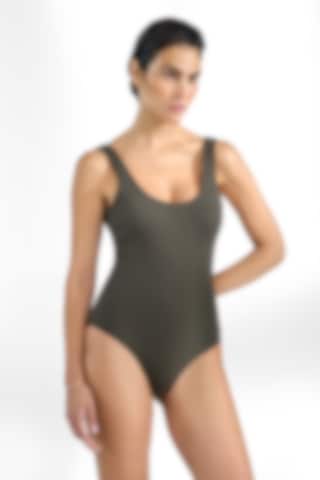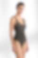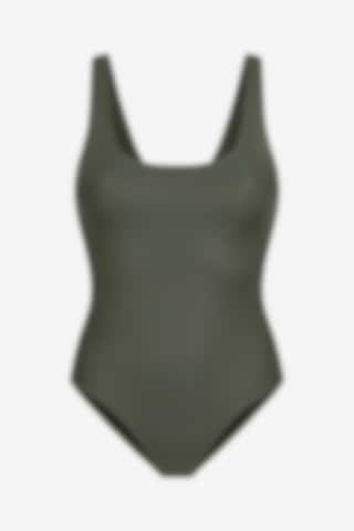 Eleganter Badeanzug in klassischem Schnitt mit tiefem Rückenausschnitt. Eingebaute Unterstützung für die Brust sorgt für zusätzlichen Komfort. Der gerippte Stoff ist schmeichelhaft und äußerst flexibel. Funktioniert auch hervorragend als Oberteil zu Shorts oder Rock.