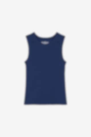 Geripptes Tanktop mit hohem Ausschnitt und etwas breiteren Trägern. Hergestellt aus biologischer Baumwolle mit zusätzlichem Stretch für eine figurbetonte Passform, die den ganzen Tag anhält. Passt perfekt zu Sommerröcken, aber auch als erster Layer unter einem Blazer – ein richtiger Held der Garderobe.