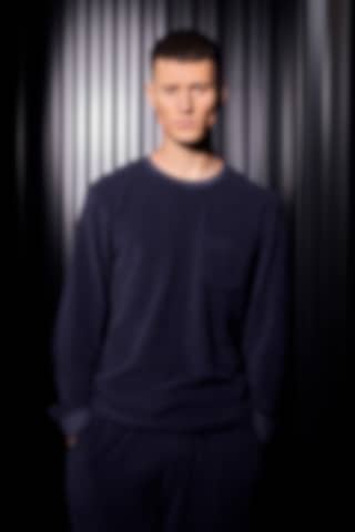 Langärmliges T-Shirt aus dicht gewebtem Bio-Baumwollfrottee. Der Stoff ist wunderbar weich, und sein Gewicht sorgt für einen schönen Fall. Bündchen an den Ärmeln und eine Brusttasche. Eignet sich als gemütliches Kleidungsstück für zu Hause, kann aber problemlos auch zu Jeans getragen werden.