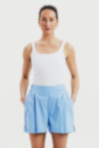 Der elastische Bund auf der Rückseite sorgt für zusätzlichen Komfort und eine flexible Passform. Gefertigt aus 100 % Bio-Baumwoll-Popeline – einem leichten und atmungsaktiven Stoff mit glatter Oberfläche. Die Farbe Air Blue verleiht den Shorts einen frischen, sommerlichen Look.