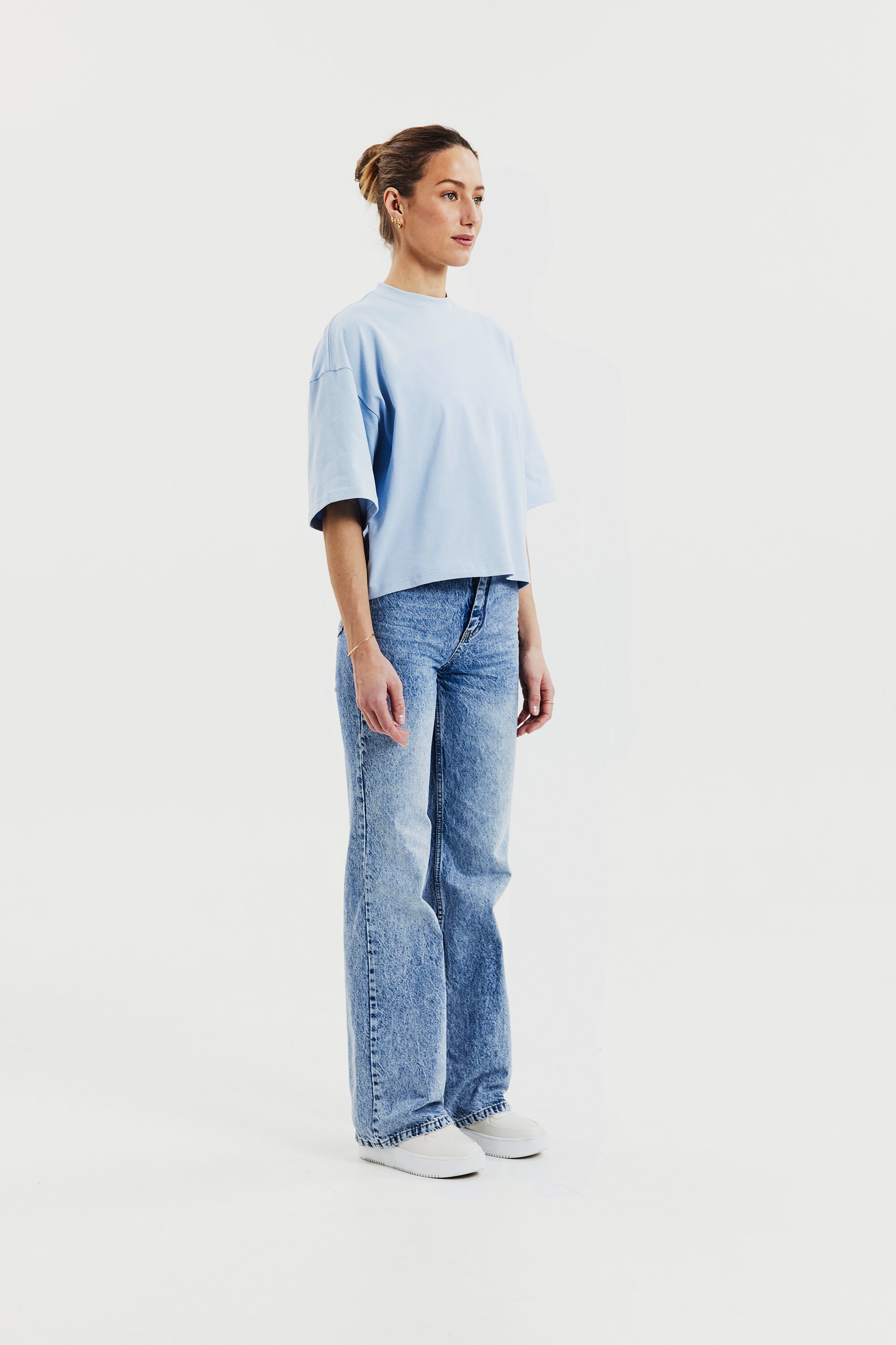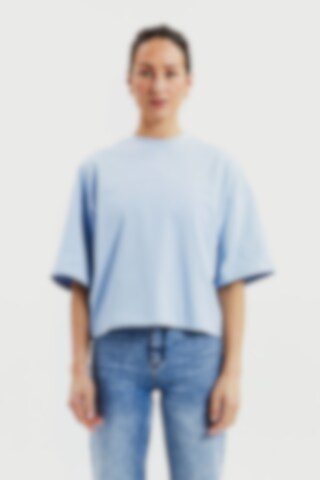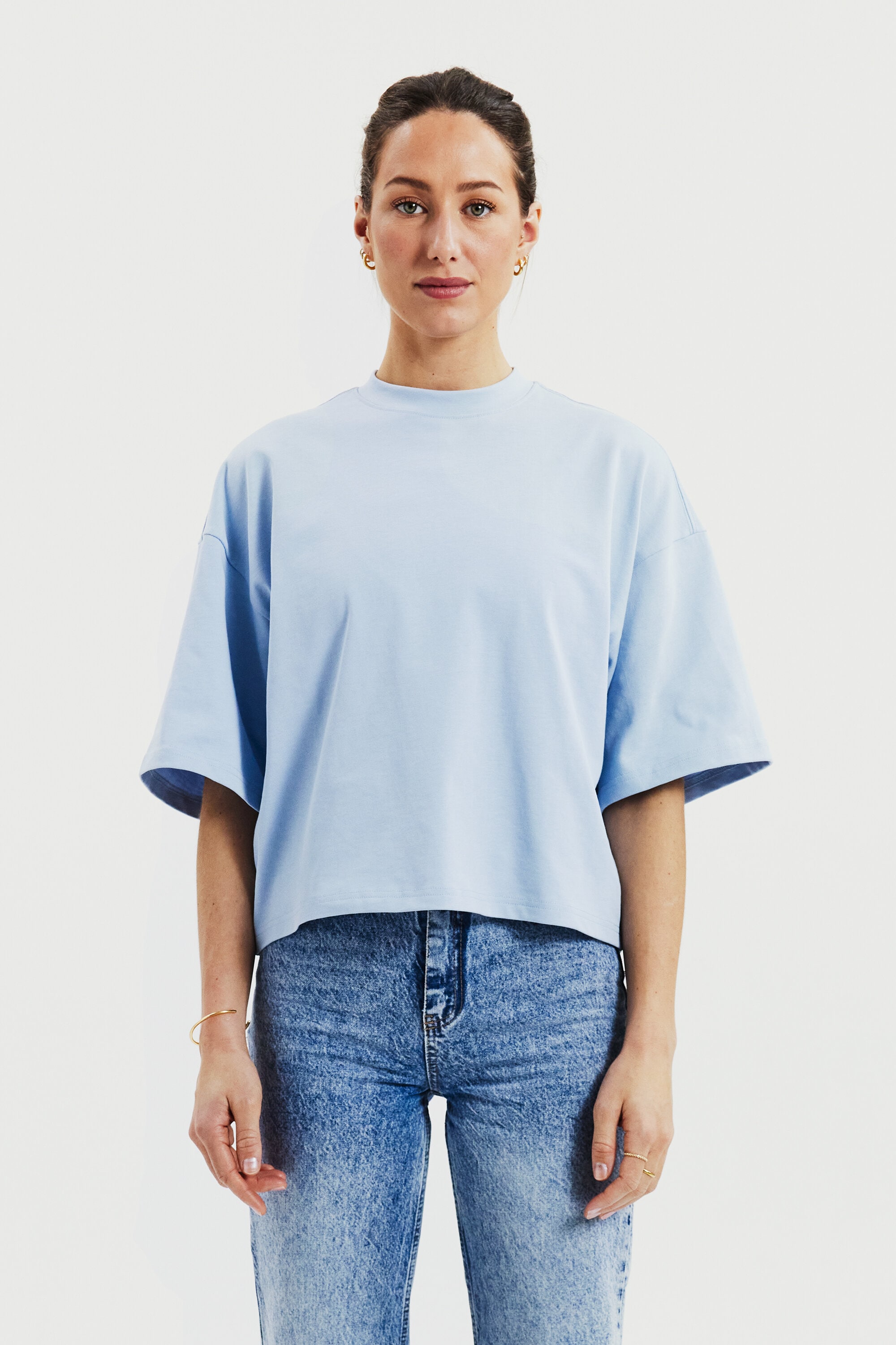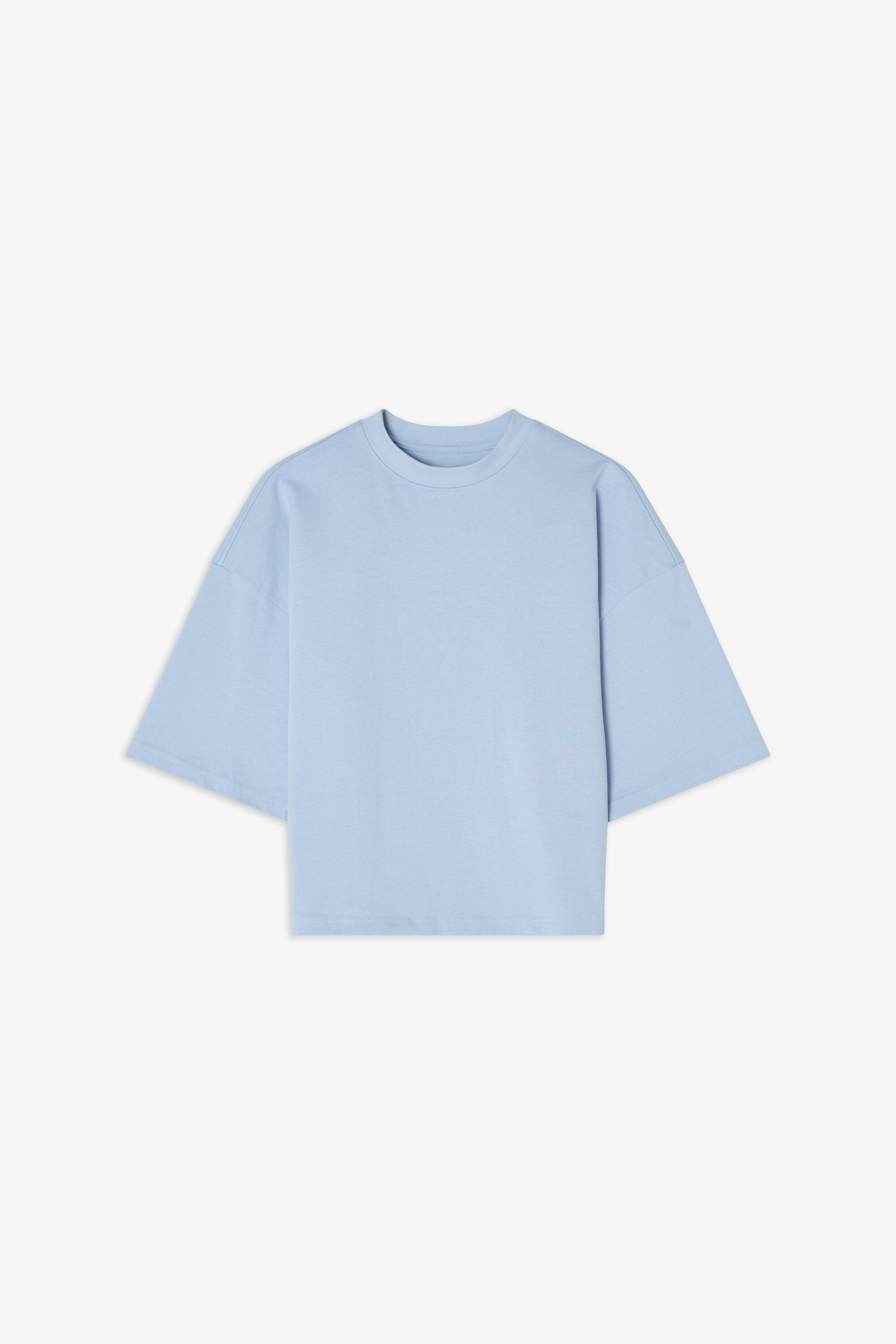 T-Shirt aus robustem 300 gsm Bio-Baumwollstoff gefertigt. Es verfügt über einen stabilen Halsausschnitt mit dekorativen Ziernähten und stilvollen Seitenschlitzen. Mit leicht verlängerten Ärmeln und breiteren Schultern erhält es einen subtilen Oversized-Look. Dieses Stück kommt besonders zur Geltung, wenn es solo getragen wird, und vermittelt eine mühelos coole Ästhetik.