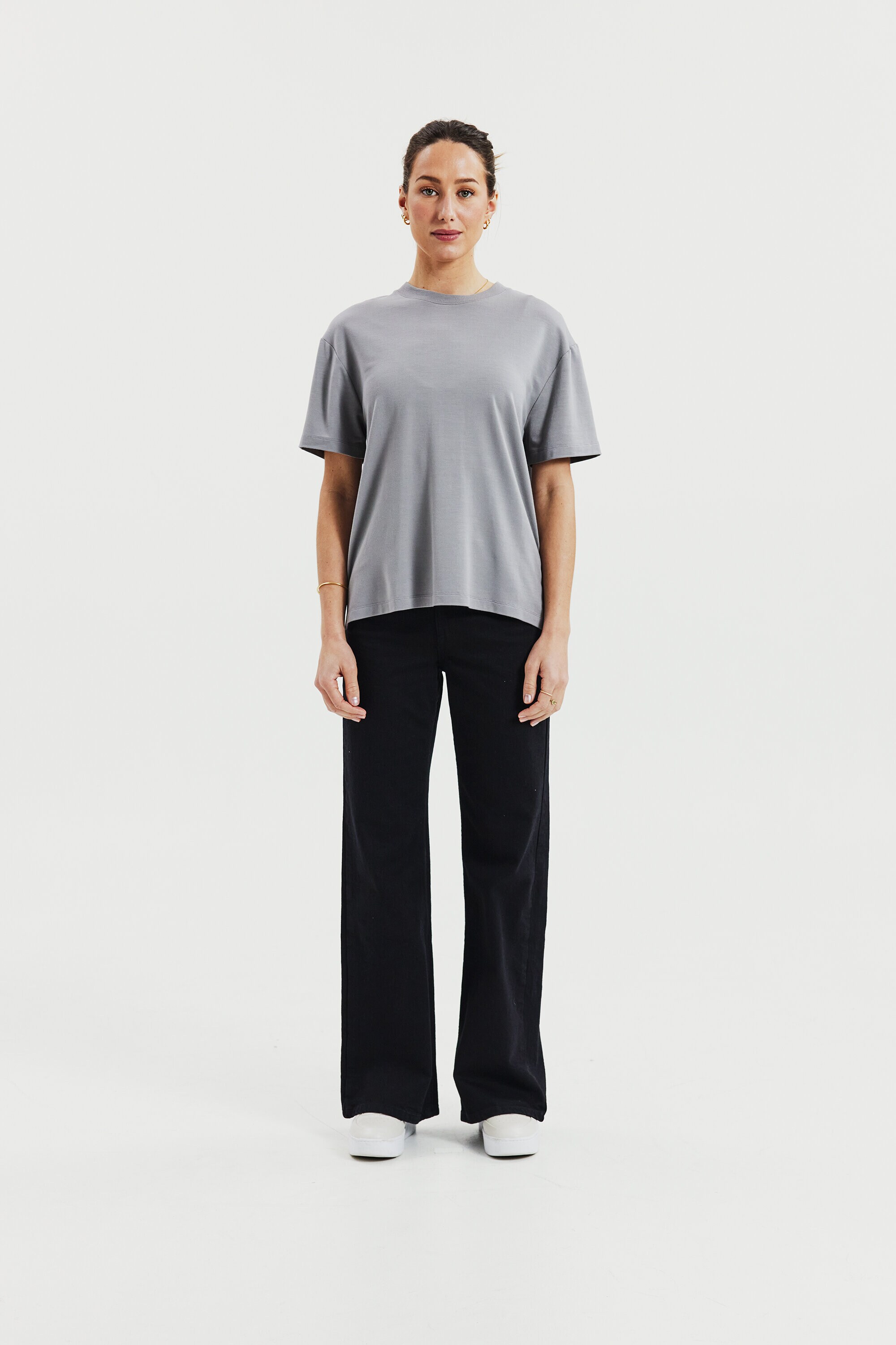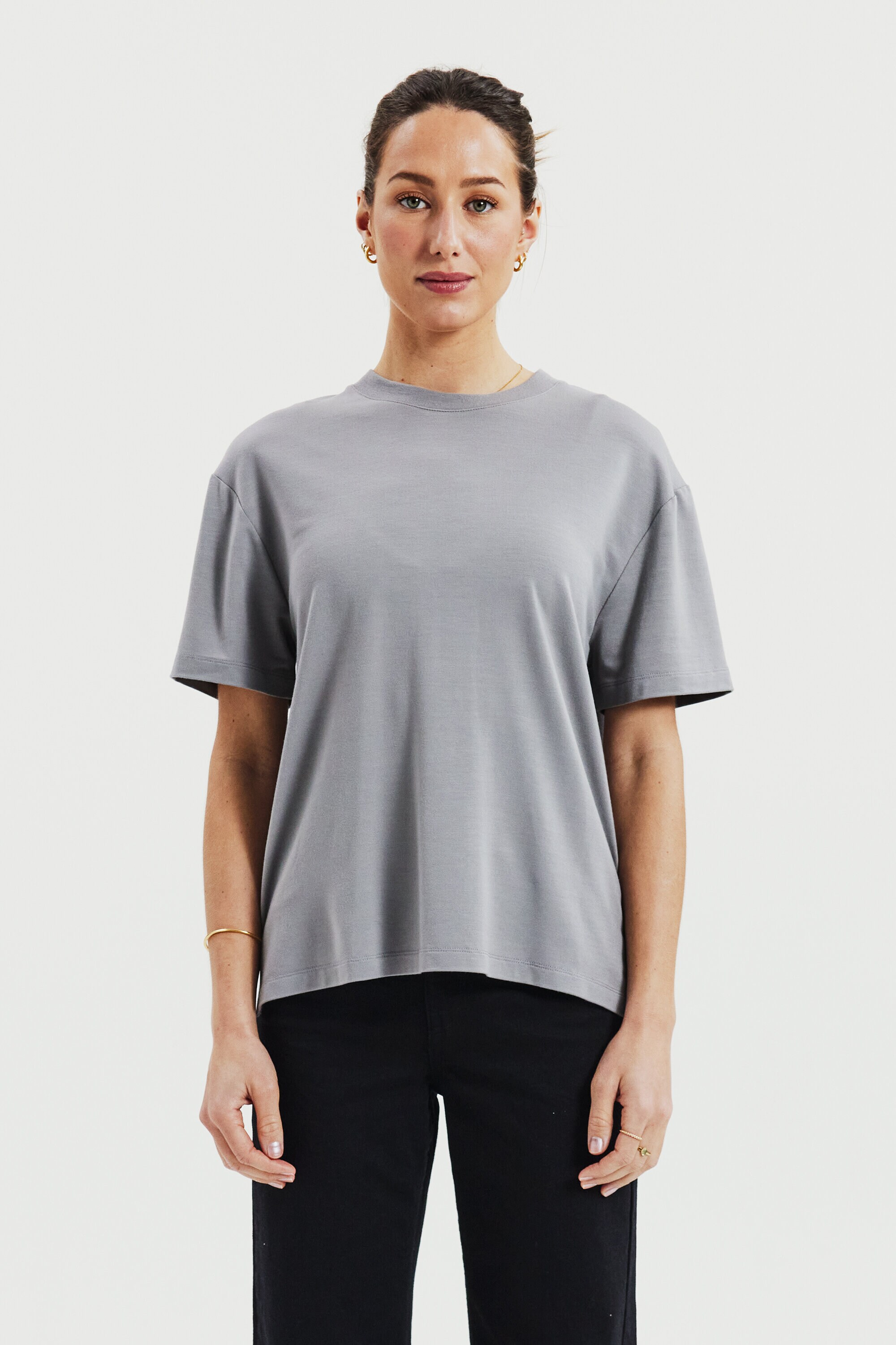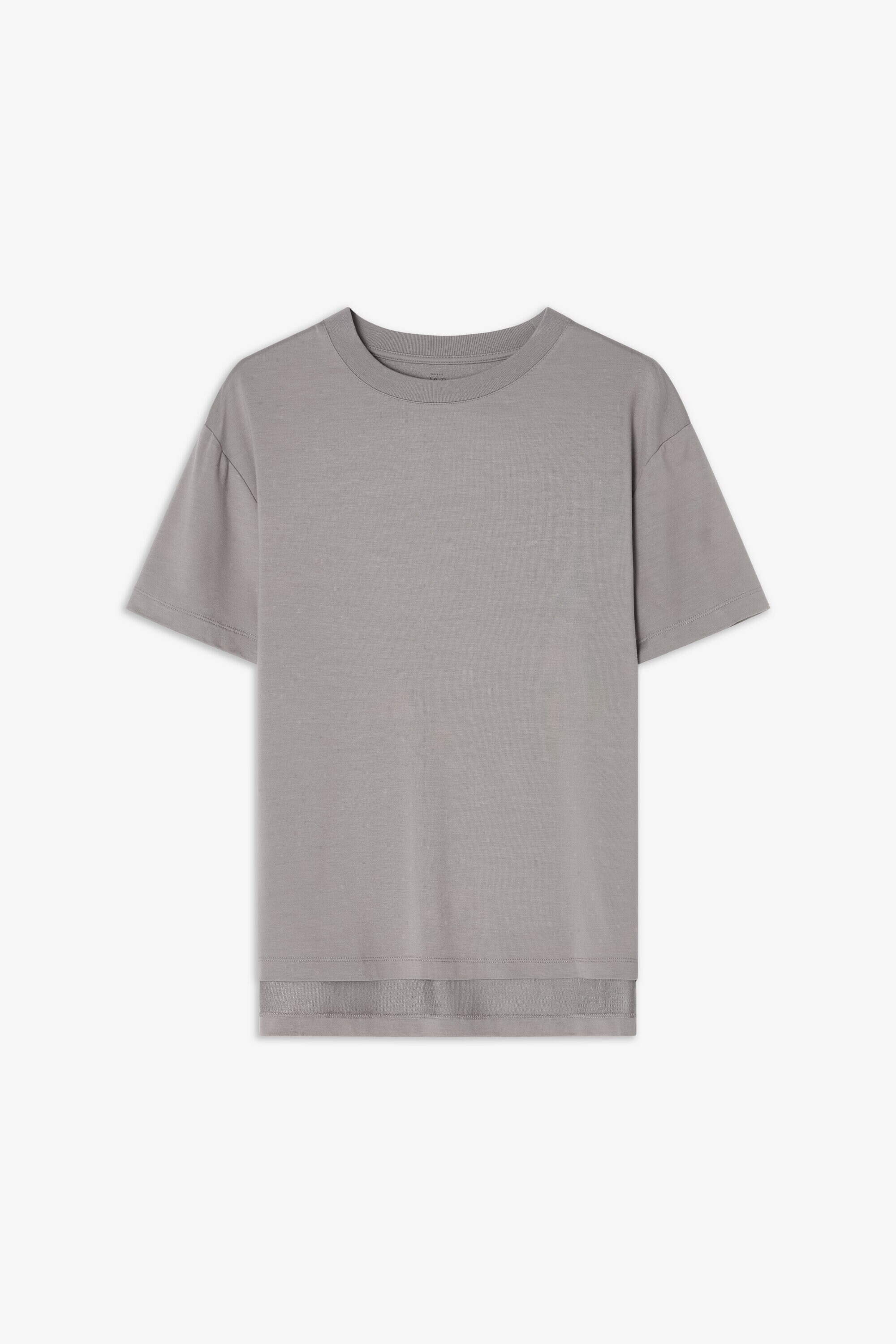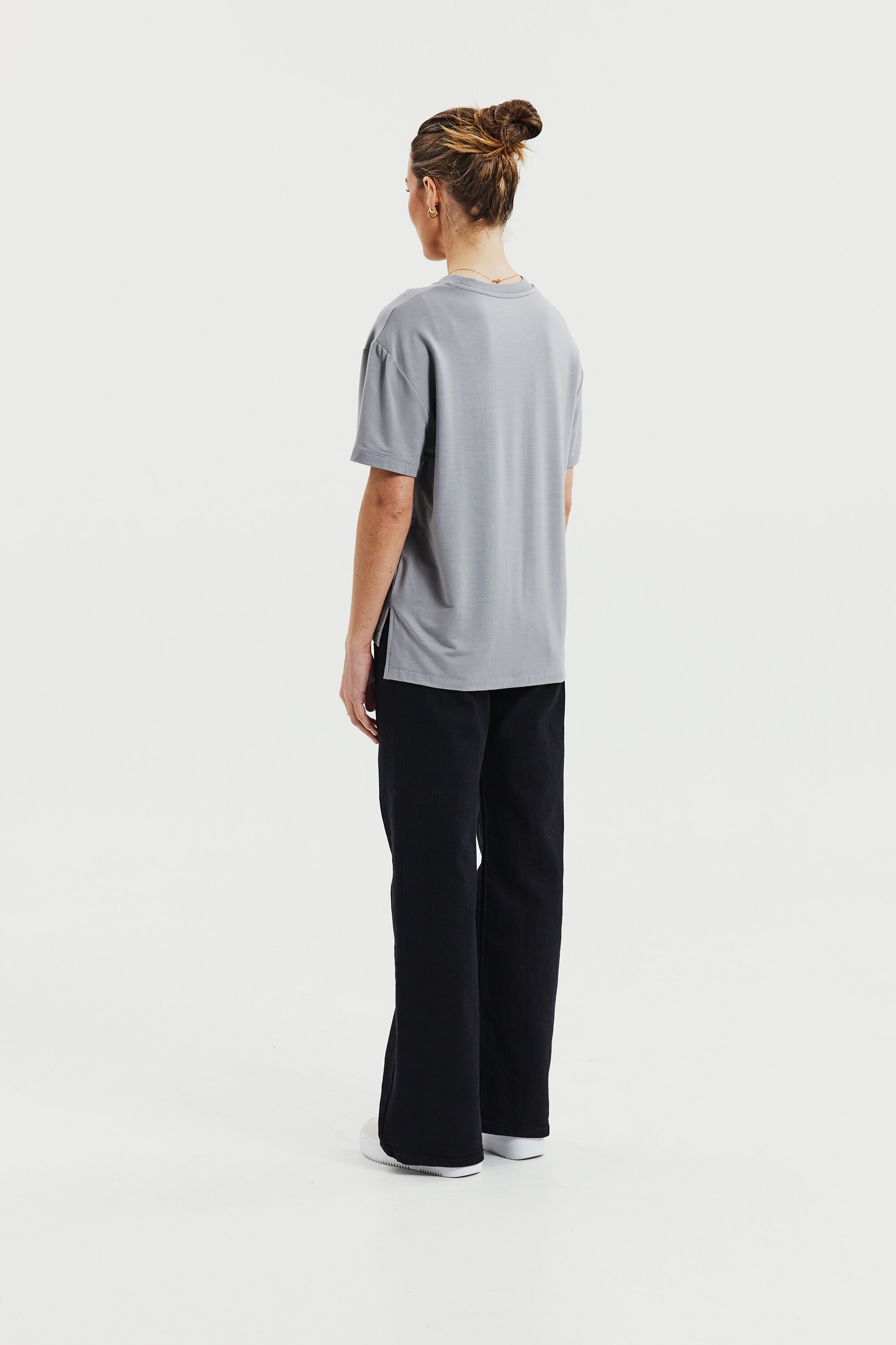 Erleben Sie das luxuriöse Gefühl unseres schweren Viskose-Jersey-Stoffs mit seinem exquisiten Fall. Die kastenförmige Passform und die Seitenschlitze bieten außergewöhnlichen Komfort. Die Kombination aus diesem Premium-Stoff und dem modernen Schnitt verleiht unserem T-Shirt ein aktualisiertes und elegantes Aussehen, das wirklich bemerkenswert ist.