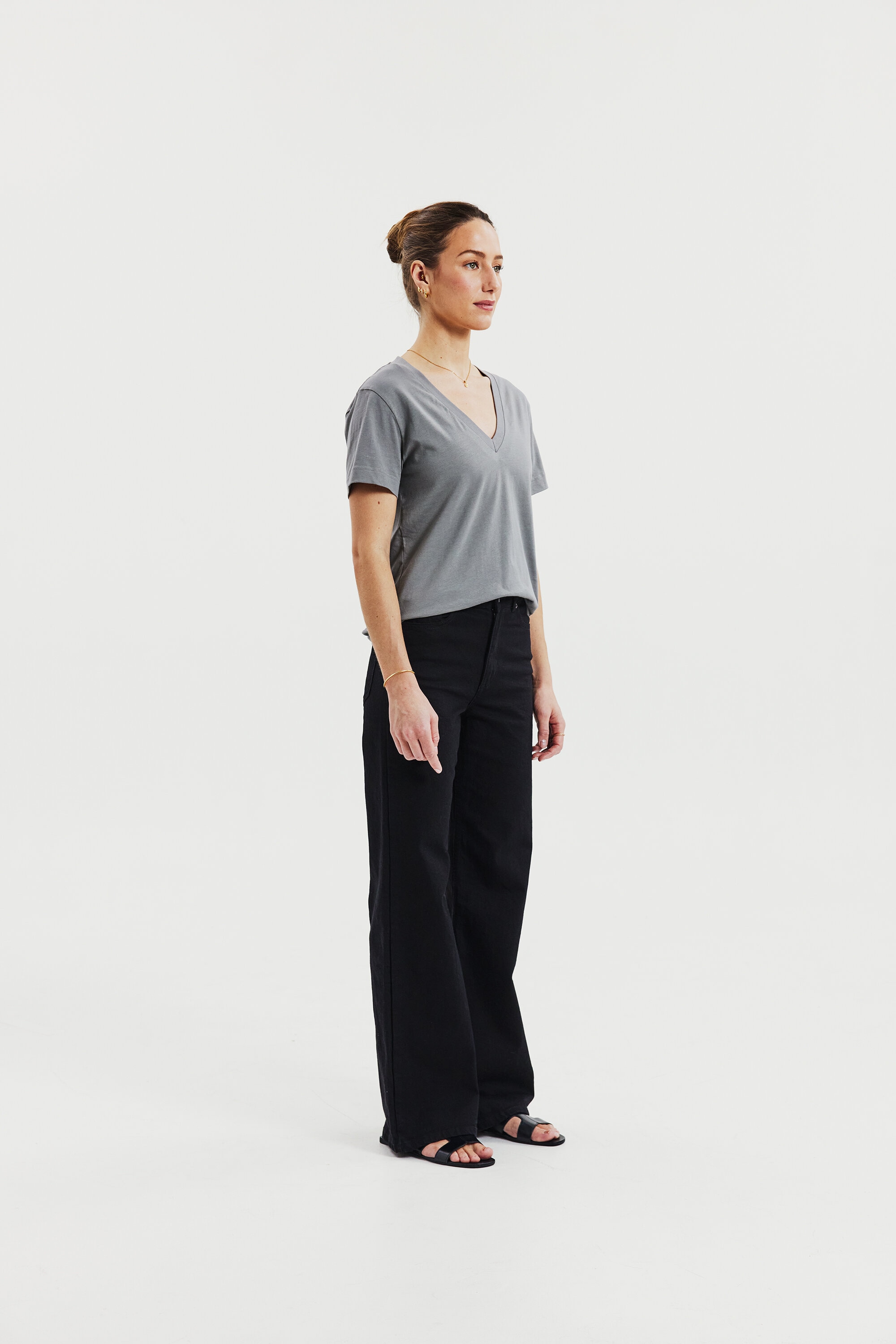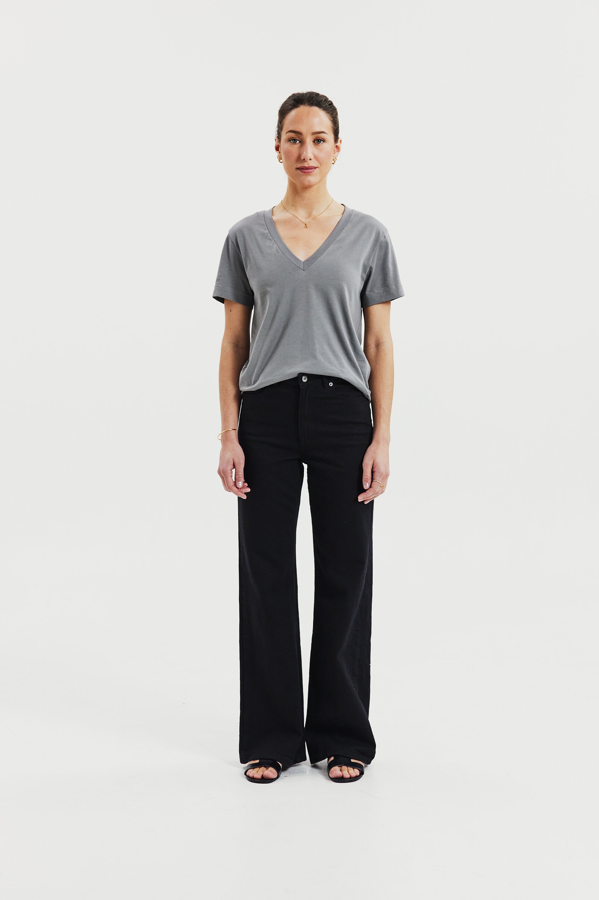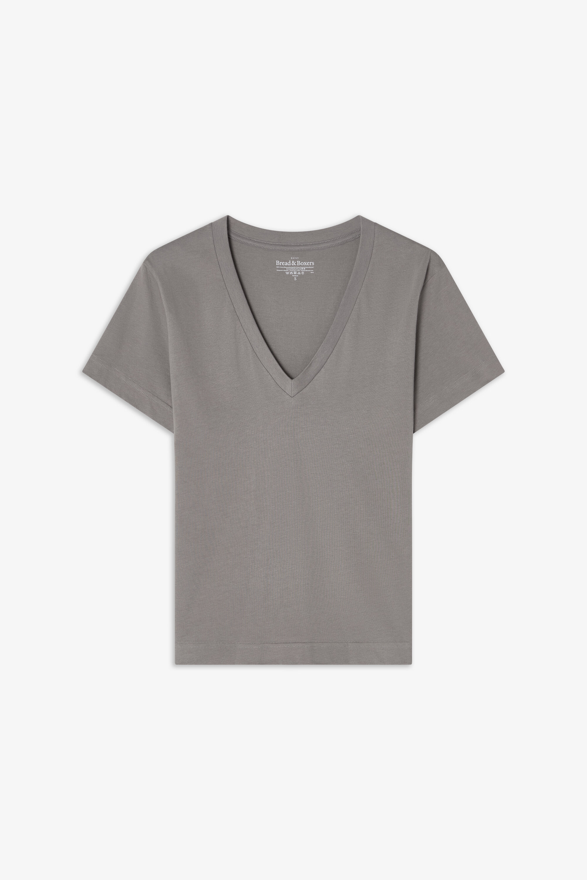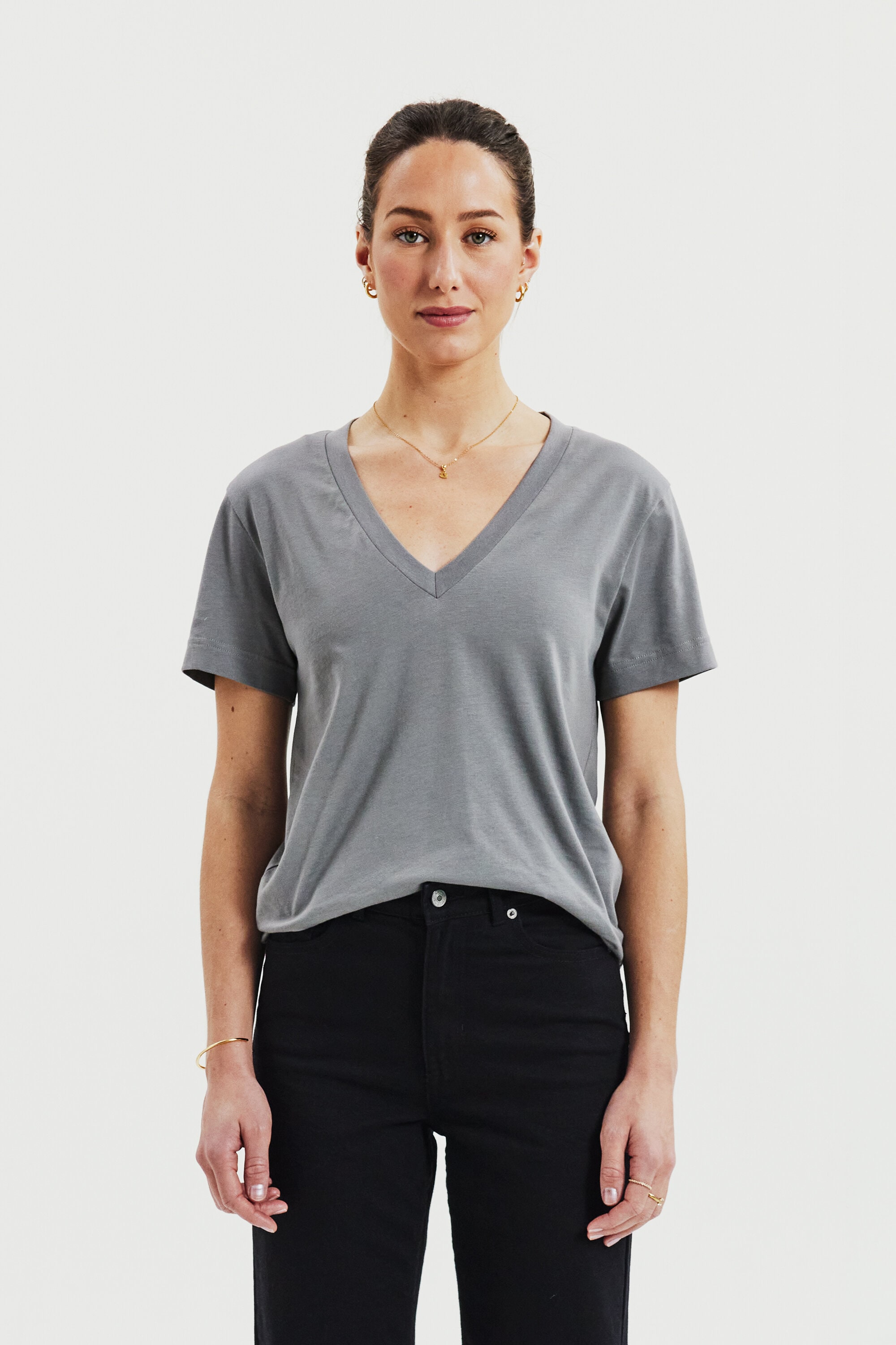 Ein moderner Klassiker mit kastigem Schnitt, gefertigt aus dichter, weicher Bio-Baumwolljersey. Regulär geschnitten mit einem großzügigen V-Ausschnitt und feinen Ziernähten – ein unverzichtbares Essential für jede Garderobe.