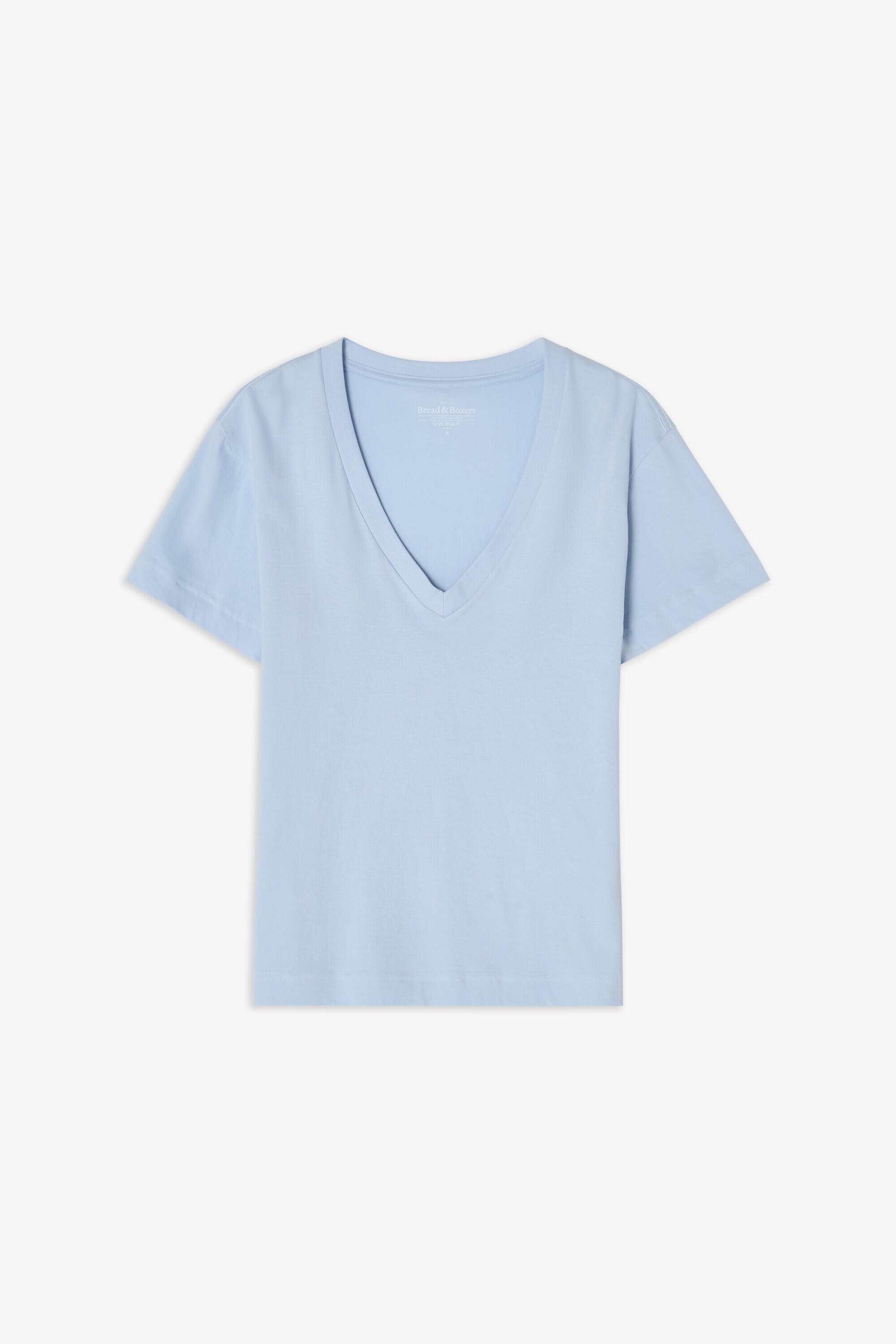 Ein moderner Klassiker mit kastigem Schnitt, gefertigt aus dichter, weicher Bio-Baumwolljersey. Regulär geschnitten mit einem großzügigen V-Ausschnitt und feinen Ziernähten – ein unverzichtbares Essential für jede Garderobe.