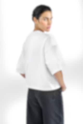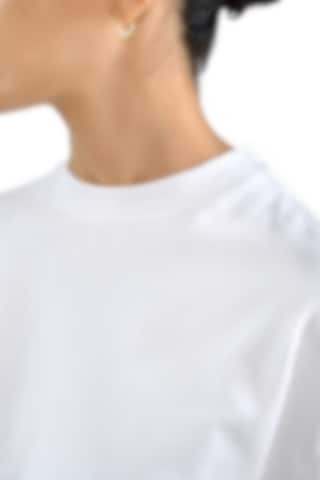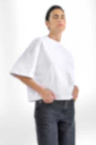 T-Shirt aus robustem 300 gsm Bio-Baumwollstoff gefertigt. Es verfügt über einen stabilen Halsausschnitt mit dekorativen Ziernähten und stilvollen Seitenschlitzen. Mit leicht verlängerten Ärmeln und breiteren Schultern erhält es einen subtilen Oversized-Look. Dieses Stück kommt besonders zur Geltung, wenn es solo getragen wird, und vermittelt eine mühelos coole Ästhetik.