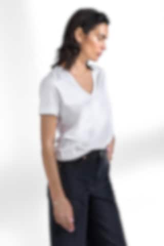 Ein moderner Klassiker mit kastigem Schnitt, gefertigt aus dichter, weicher Bio-Baumwolljersey. Regulär geschnitten mit einem großzügigen V-Ausschnitt und feinen Ziernähten – ein unverzichtbares Essential für jede Garderobe.