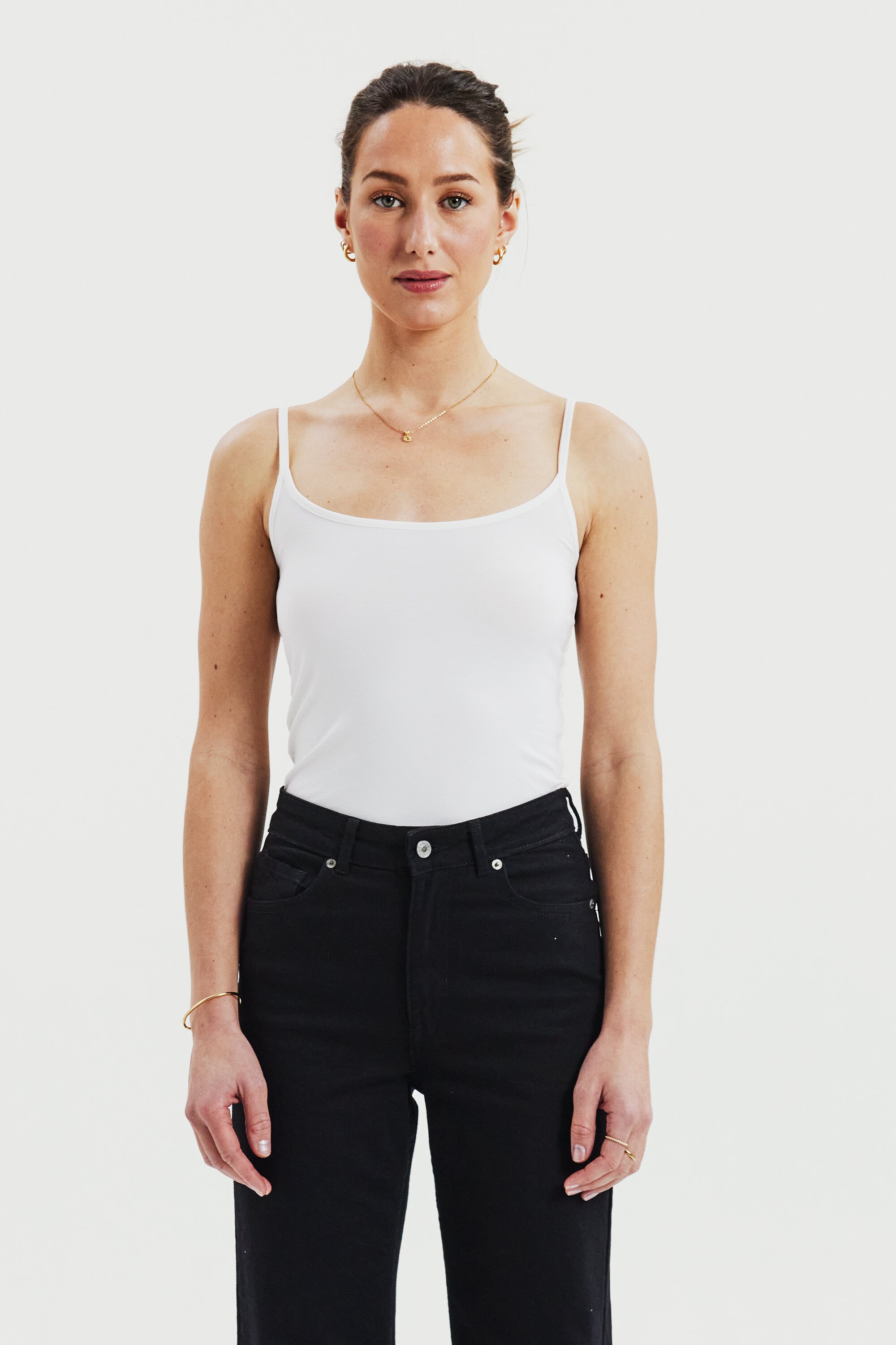 Tank Top / Singlet für Damen mit schmalen Trägern und rundem Ausschnitt. Gefertigt aus weichem Lyocell mit Stretch, das für eine flexible und figurbetonte Passform sorgt. Das leichte, atmungsaktive Material macht das Top besonders angenehm zu tragen. Ein vielseitiges Tank Top für Damen – ideal als erste Schicht unter anderen Kleidungsstücken oder solo an warmen Sommertagen.