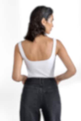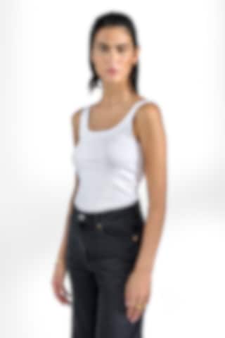 Elegant tank top made from an organic double layered cotton jersey for a luxury feel. It’s hidden seams and perfected bands makes it just as suitable for the party as an everyday staple. The unique design is fully covering, has a scooped back and provide a slight shaping feel. We love to style it with almost all items in our wardrobe but especially with a festive skirt or with jeans and a blazer.